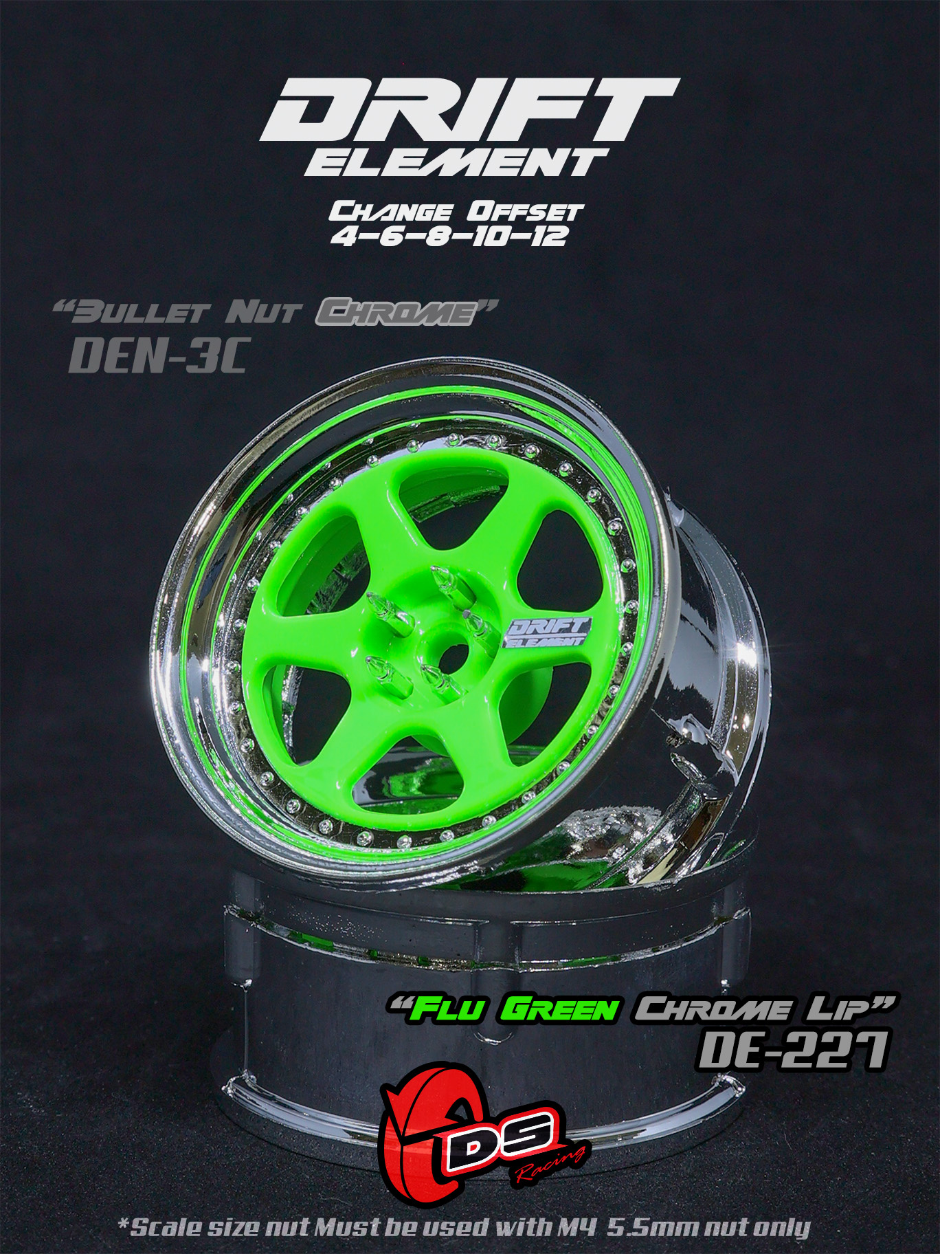 DS Racing / DE-227 / Drift Element 6 Spoke Wheel Adj. Offset (2pcs) / Flu Green Face / Chrome Lip