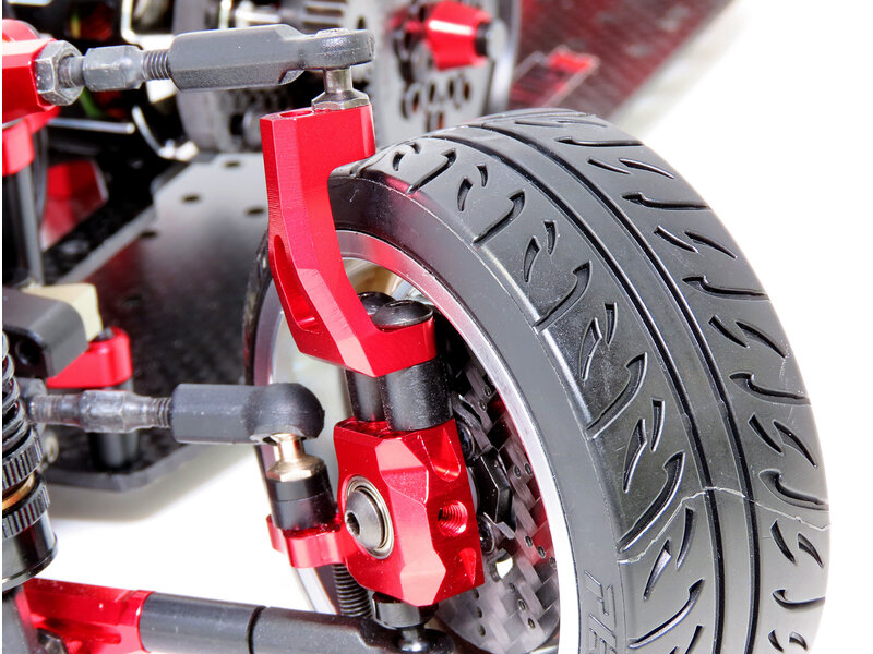 High upper extension compatible with GX front knuckle series. With a special design to avoid tire interference, the kingpin angle can be set from 0 degrees to 1.5/4.5/8 degrees.