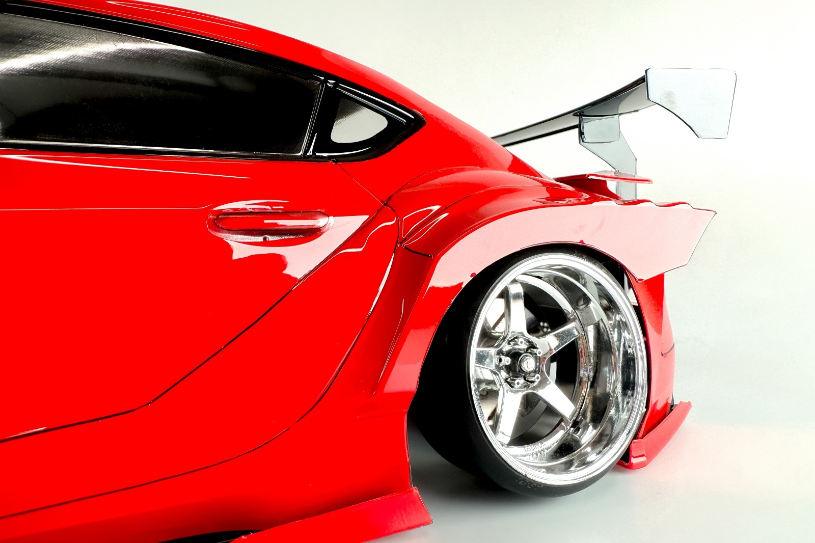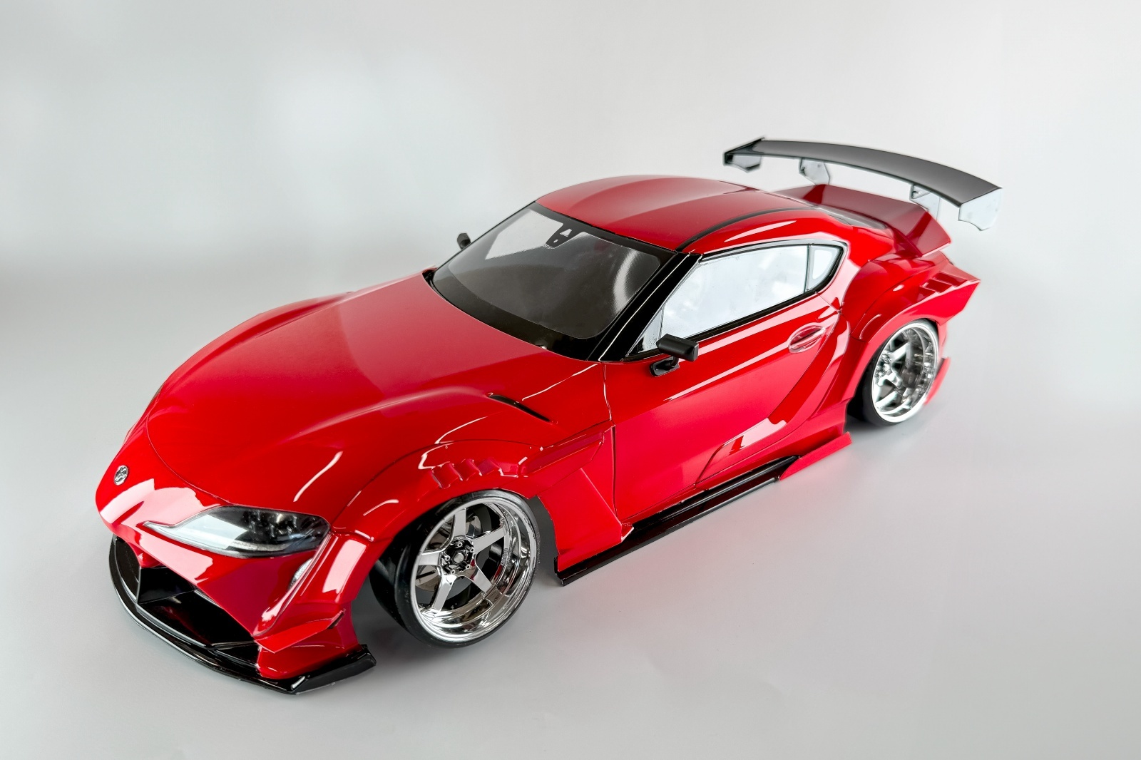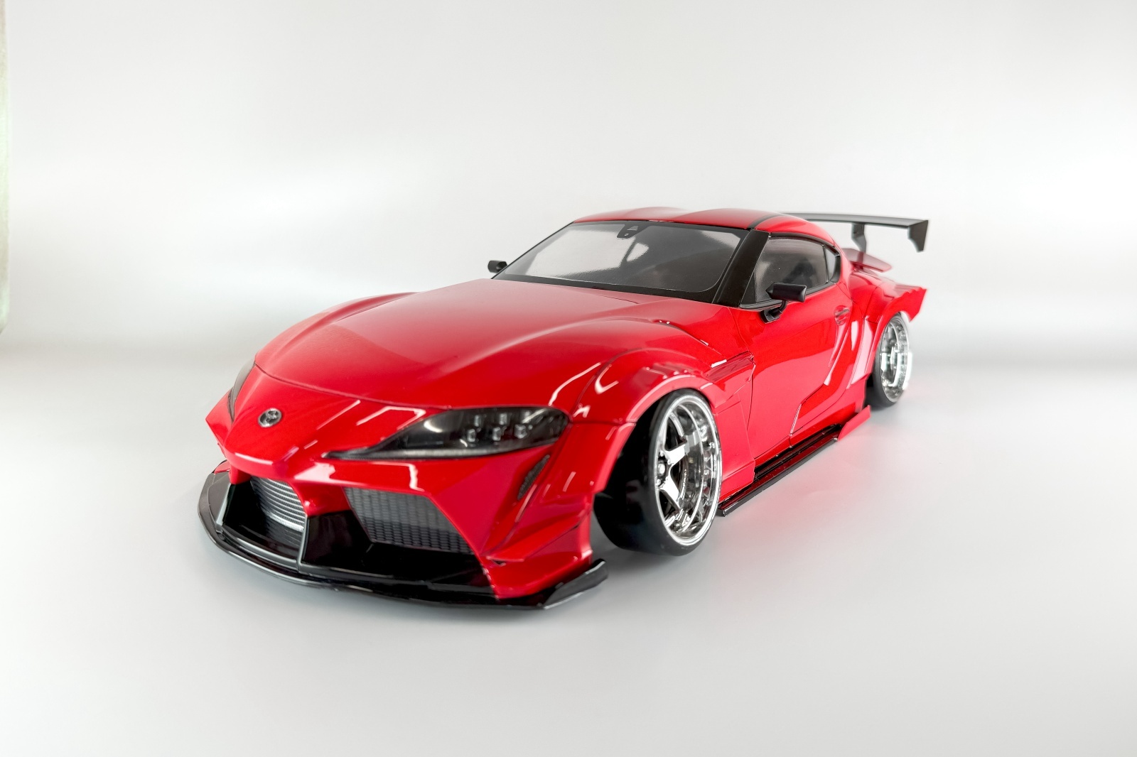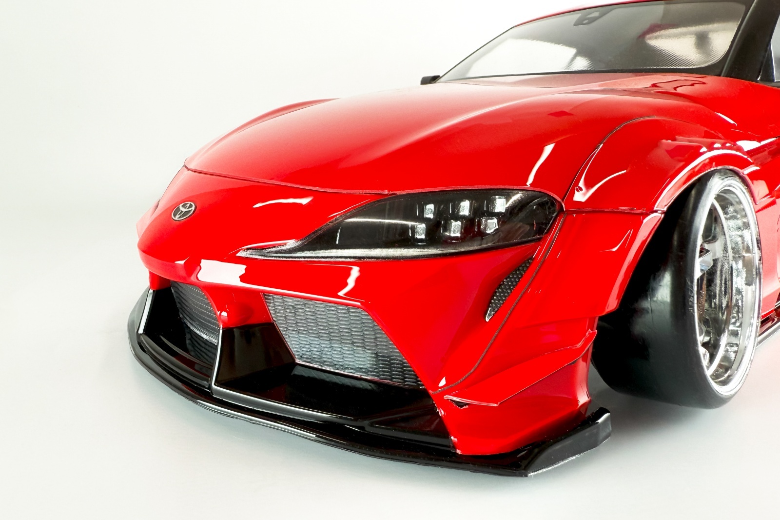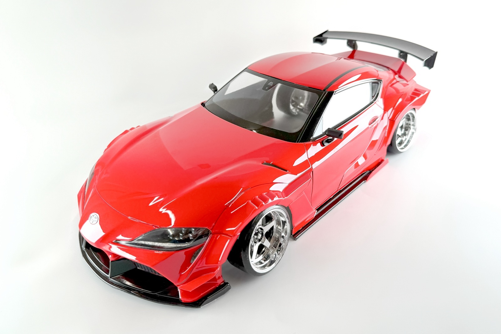 This faithfully recreates the racing aerodynamic body shell of the WEINS Toyota Kanagawa x OreDa! Racing Supra body set.