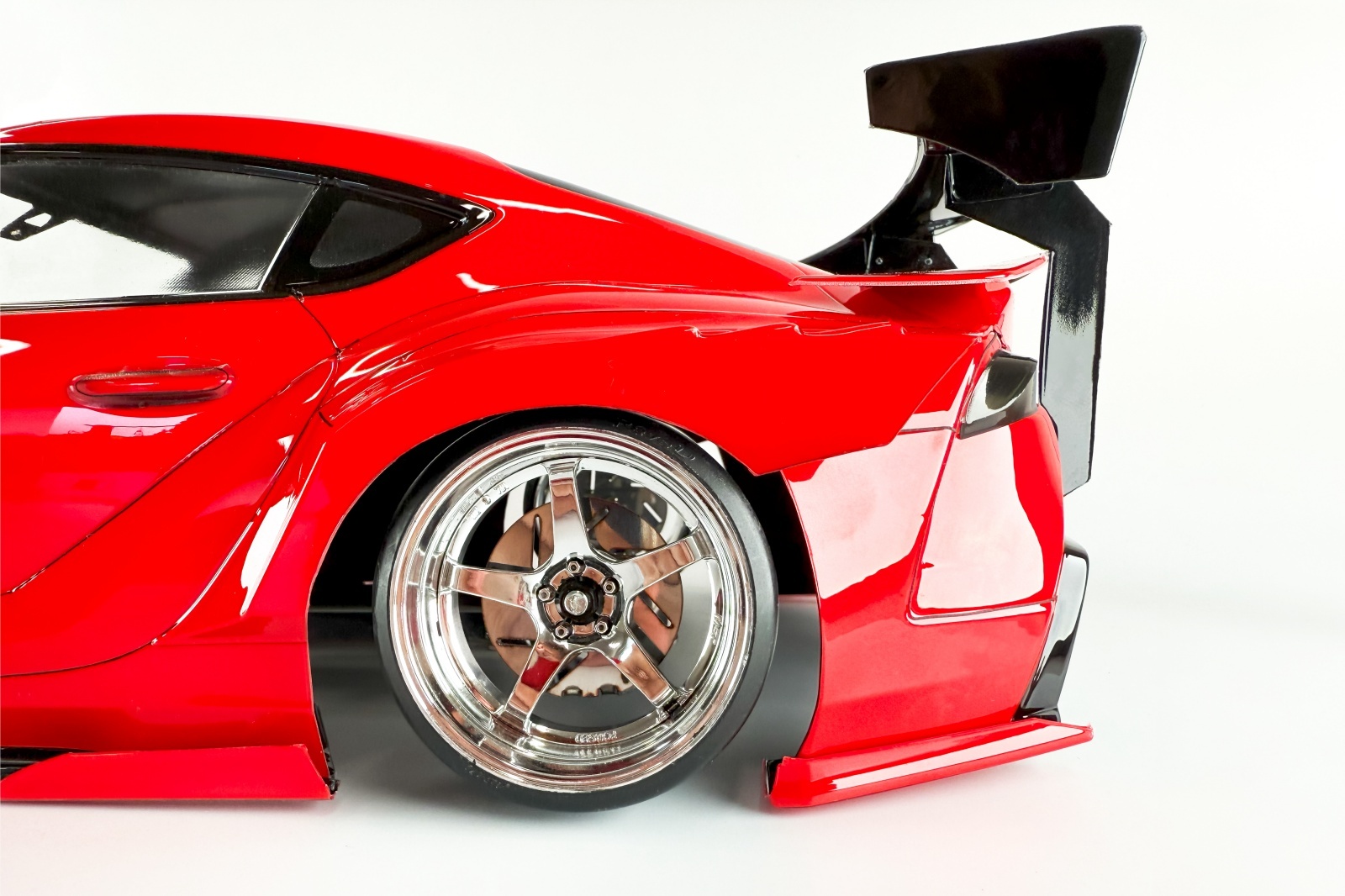 OreDa! Racing has refined the aero body designed by KUHL Racing to further improve its aerodynamic performance and powerful appearance, and has recreated the GR Supra driven by Mao Yamanaka in the D1GP as a 1/10 scale RC body.