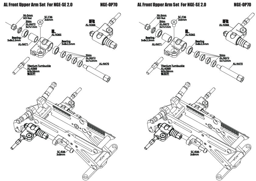 Usukani - NGE-OP70 - AL Front Upper Arm Set for NGE-SE 2.0