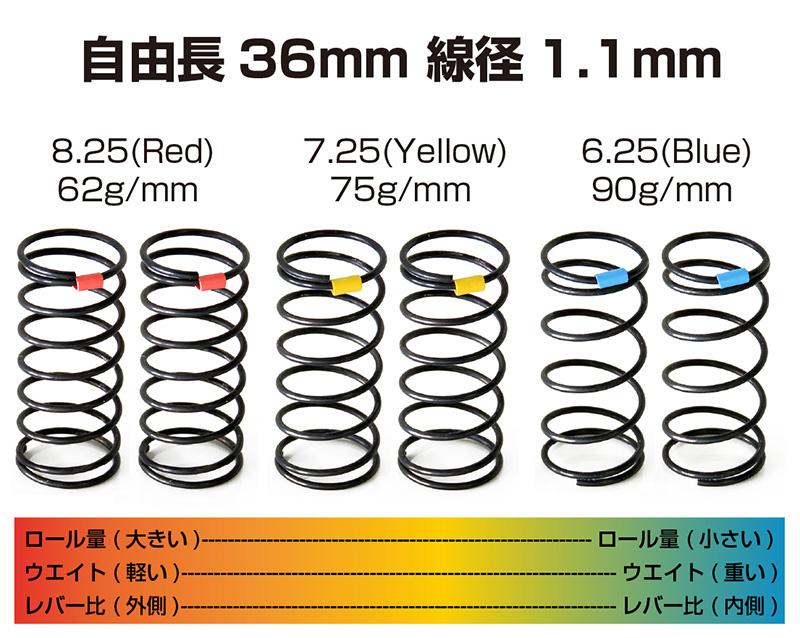 *For first-time users, we recommend starting with the low rate 8.25 coil. (Due to the high preload design, if the excess weight is small and the lever ratio is small, the vehicle height may not be lowered sufficiently.)