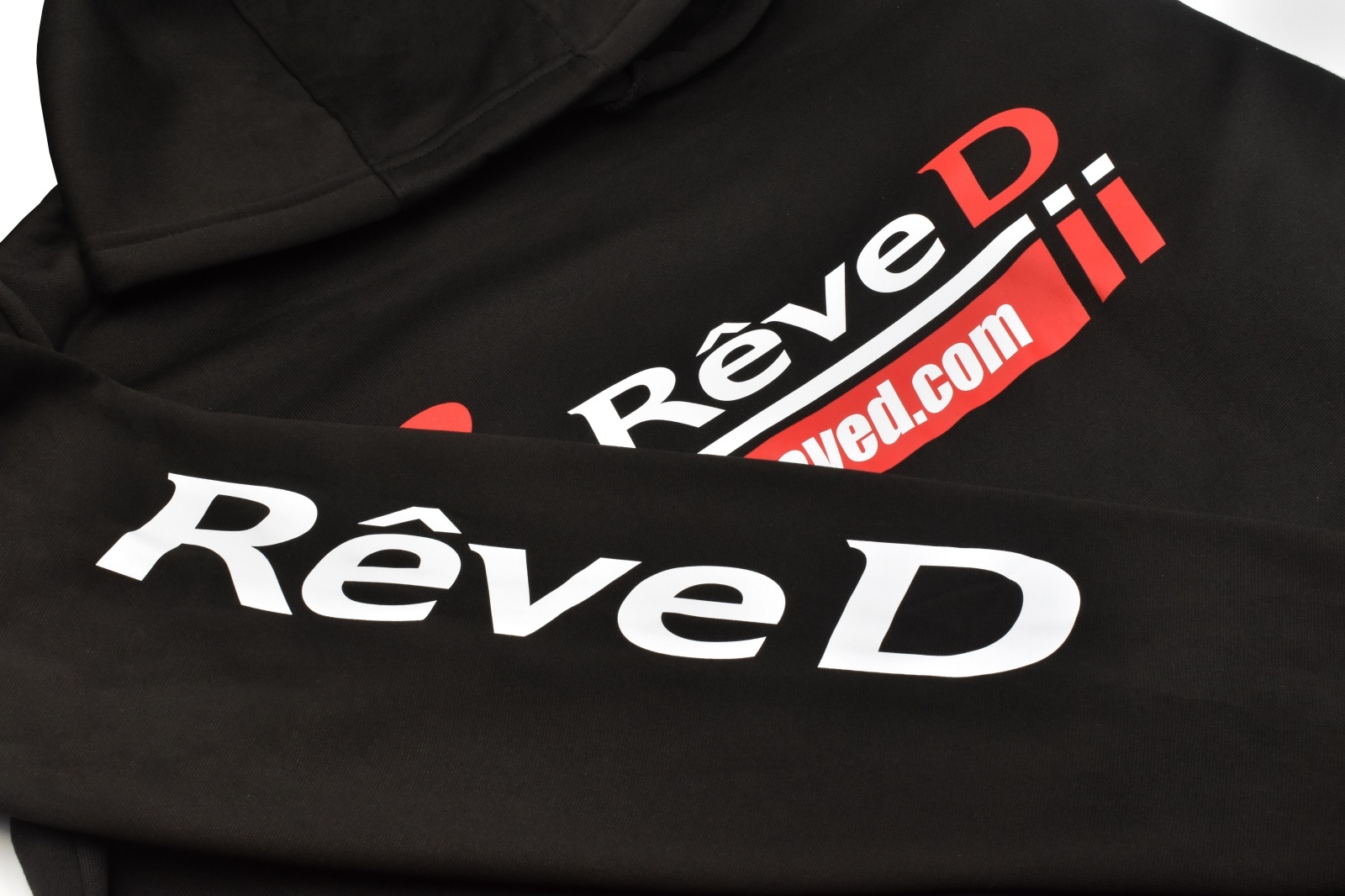 The fearless black-based ReveD Hoodie has the ReveD logo on the front and back. A white logo is printed on both sleeves, making it a striking design on the circuit and street.