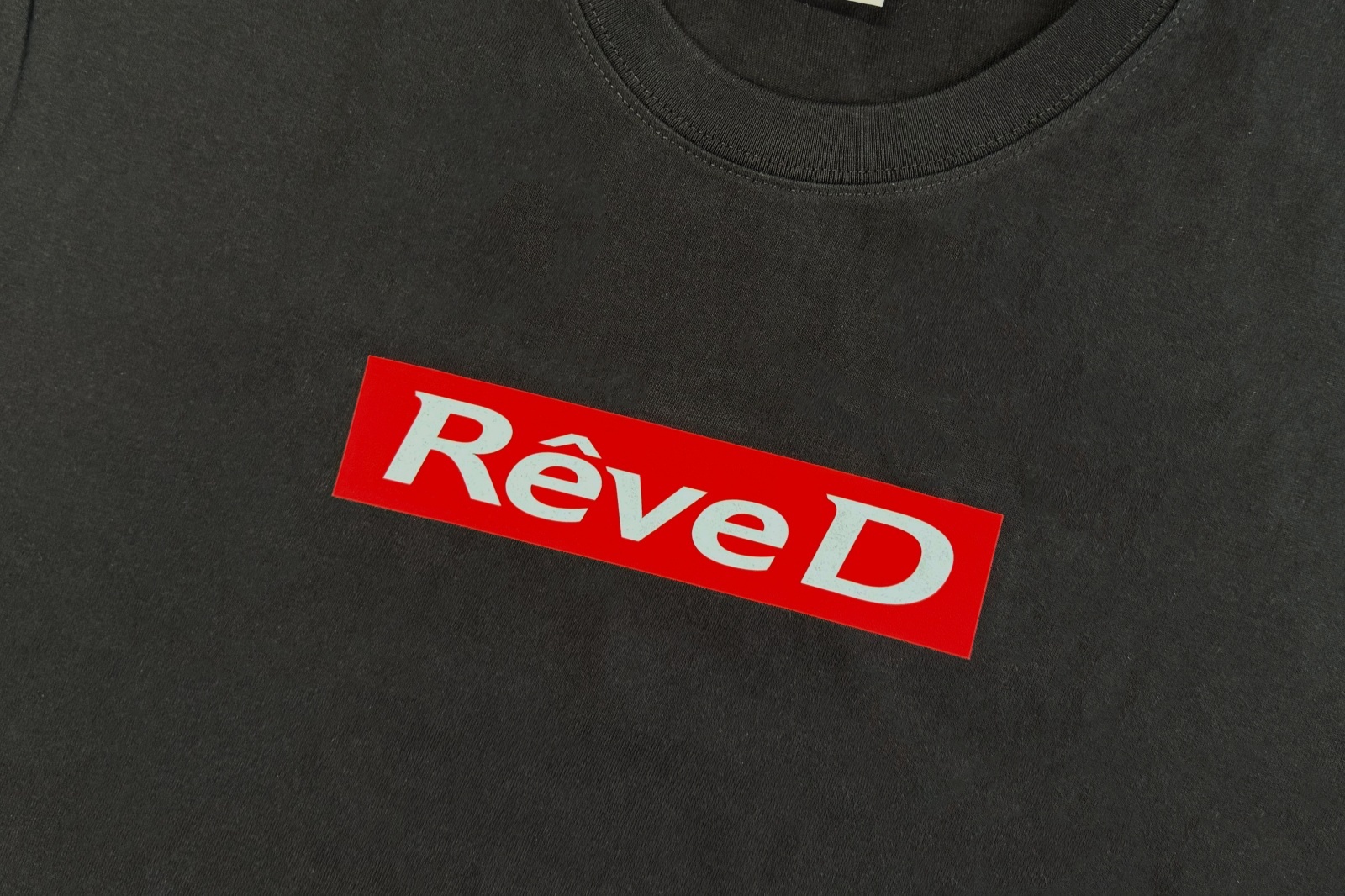 This T-shirt features a bold black base with red lines and a white logo, recreating Rêve D’s corporate colors.